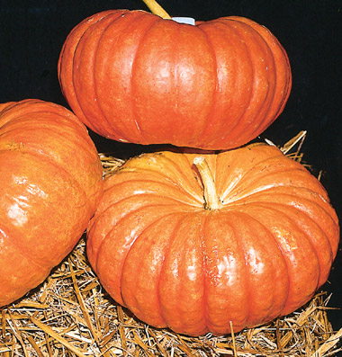 Medium-large, flattened, medium-ribbed, suggesting a wheel of cheese. Smooth, tan skin, slender woody stem. Deep orange. A beautiful oldie. Avg. 6-10 lb.
