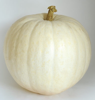 Clearly the whitest pumpkin; unique for doorstep decorations and painting. Medium-size, flattened, avg. 11-15" diam. x 6-8" tall, slightly ribbed, with a smooth white skin.